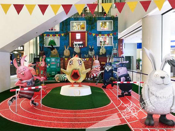 下午,“逃亡兔之夏季运动会”正式开幕。香港知名装置设计师以逃亡兔及运动元素为主题,打造“时代赛道”,普京(Putin)和基廉列克(Kirenenko)这对“逃亡好友”带着它们的亲密小伙伴从动画片中走出来,栩栩如生地出现在重庆时代广场B1层中庭及其它楼层,高度还原动画故事里面逼真又有趣的场景。