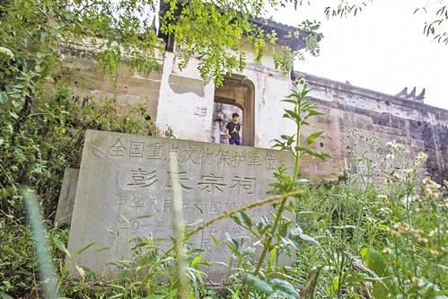 云阳县凤鸣镇黎明村,彭氏宗祠门口的“全国重点文物保护单位”石碑。特约摄影 马多