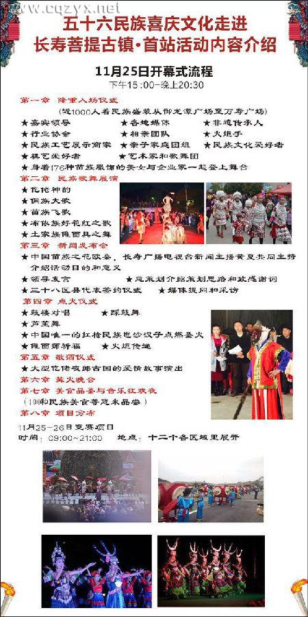 摘要: “大重庆·大创新·领跑民族文化”五十六民族风情体验活动新闻发布会和点火仪式将于11月25日下午在长寿菩提古镇举行。