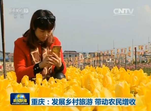 央视新闻联播报道重庆发展乡村旅游,带动农民增收致富的消息。视频截图