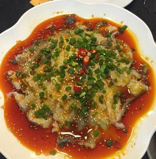 鱼片切得薄而透亮,一口吃进嘴里,小抿一下就化了,完全不用嚼,相当的巴适。