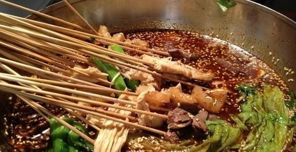 地点在川粮大厦背后,三岔河边。无店面路边摊老板是一无齿老太,生意全在一口盛满自制火锅底料的汤锅里,有火锅粉和面,串串全是素菜,有藕片、木耳、平菇、海带、海菜……价格很便宜,三毛一串,味道也不错。学生们在这里也能体会什么叫出手阔绰。但第一次约女朋友,不宜来此消费。