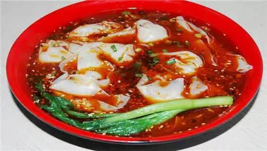 抄手的调馅非常考究,肉茸要保持充足的水分,制好后的馅能浮于水面。成品特色是滋润滑软,细嫩咸鲜。