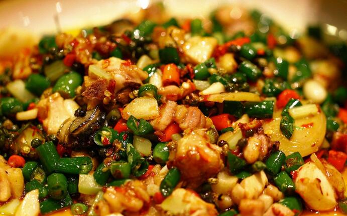 在重庆,江湖菜大概在上个世纪八九十年代开始流行,最早是出自歌乐山镇一个叫林中乐的路边店推出的辣子鸡,之后南山泉水鸡、翠云水煮鱼、麻辣虾、泡椒兔、邮亭鲫鱼、烧鸡公等江湖菜各领风骚一两年。别的地方也提江湖菜,但终究不能像重庆的江湖菜那样,从视觉和味觉上给人轰轰烈烈、酣畅淋漓的感觉。