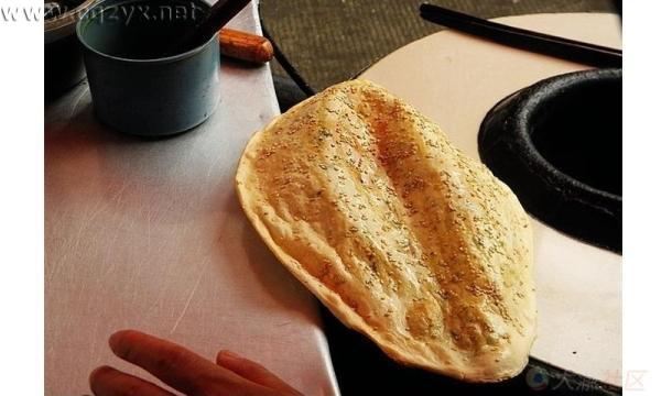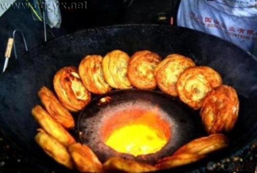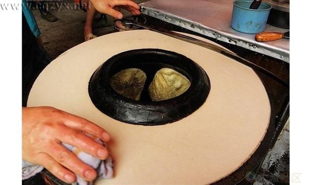 还有一种就是在重庆常见的,不知道在重庆本地叫什么。但是在湖北经常看到,在那一带基本叫什么荆州锅盔、公安锅盔,也是根据地名取名吧。做法是一块面上撒上佐料,可甜可咸可辣,形状有长的圆的,然后贴在炉壁上烤。这个好吃的点在于饼带点硬,显得非常脆,中间还是空心的。甜味,糖在中间烤化了渗入带芝麻的面饼里,非常香甜。辣的是在面饼表面撒上辣的佐料,香辣可口。