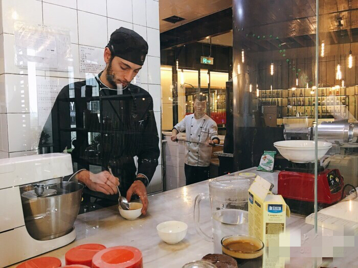透明的玻璃厨房可以看到大厨的烹饪过程,右手边还有一个巨大的烤炉,专门同来烤制点心和披萨。