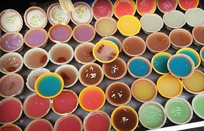 钵仔糕大概是很多重庆小伙伴的回忆吧,五颜六色的,蓝莓的最好吃了~现在都特别少见了,只有在一些地下通道有看到。