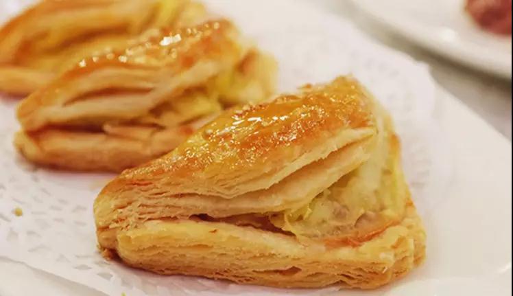 金黄色的层层酥,酥层分明,口感酥软,口味香甜滋润,作为小吃真是不二之选,像团长的话一般就拿来当零食下口了。