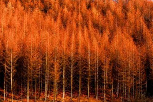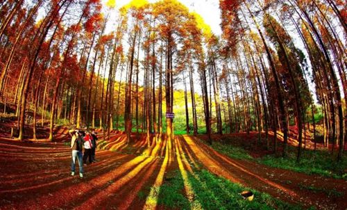 山王坪的成片成片的水杉林也是一大特色。进入秋天,它们纷纷披上金黄的外衣,漫山遍野,一片片火红。