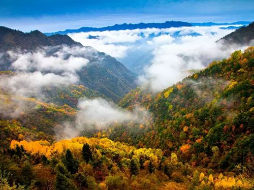 金秋时节,巍峨的大巴山上秋叶缤纷,有红色、黄色、紫色、绿的……彩叶是秋天送给城口的诗,层林尽染彷如童话世界。