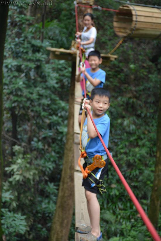高空、速度是小朋友们所喜爱的户外丛林探险元素,除了这两个元素,铁山坪“飞越丛林”乐园也将力量、毅力加入到乐园的探险环节之中,让小朋友享受更为全面的挑战。“穿越丛林”用各种各样的障碍环节将树连成一条线路,参与者通过爬、滑、游、跨、跳、飞等动作越过悬空桥梁、网道、步道、木桶等障碍,到达终点,完成“飞越丛林”这一户外探险运动的全过程。