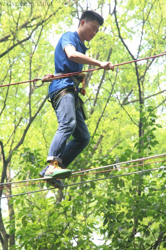 除了儿童线,“飞越丛林”也针对白领和学生设计了健身线路。线路在环节设计上,特别加入了铁路桥、上坡渔网道等能锻炼全身肌肉平衡的障碍环节。参与者完成这条线路后,排汗量是进行一千米快跑运动的2-3倍,不仅能达到锻炼身体的目的,还对减肥塑身有一定的功效。