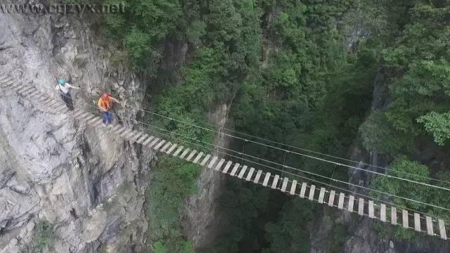 青龙桥由木板和铁索组成,在数百米的高空上,风吹来还会有些微晃动,不过挑战的就是心跳。