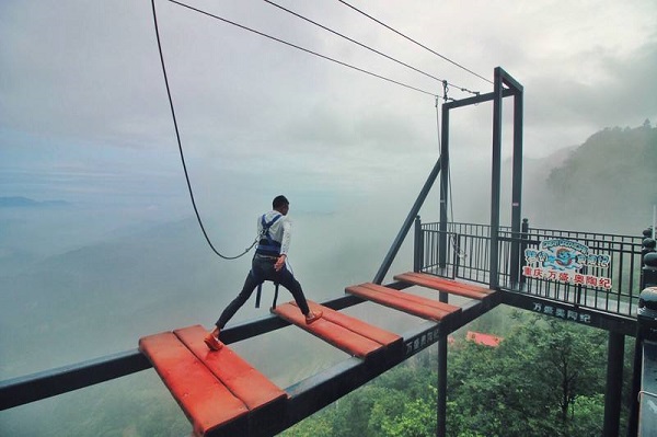 利用典型重庆山地地形打造而成,以建立在300米悬崖之上的各类高空刺激项目为主,景区已成为全球高空刺激景区集合地代名词,在抖音上的重庆必打卡景点中排名第一,奥陶纪景区天空悬廊获吉尼斯世界纪录。