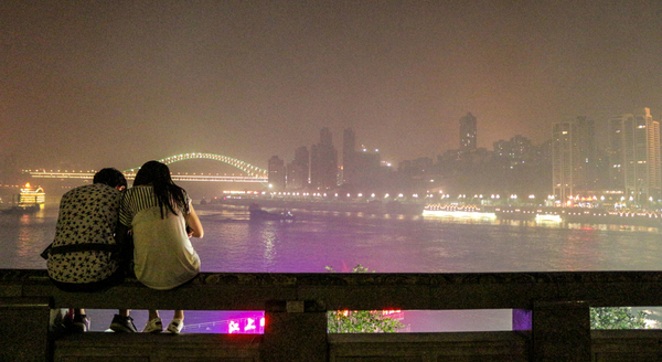 夜晚随着人流,走到朝天门码头,去看看这个地方的夜景,还有这里的两江并流(长江和嘉陵江)。