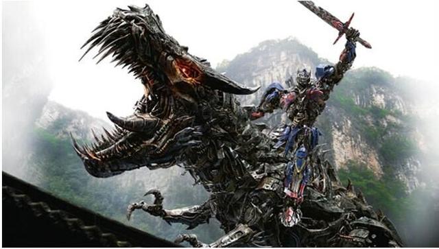 影片《变4》中擎天柱与机械恐龙在武隆天生三桥景区激战画面