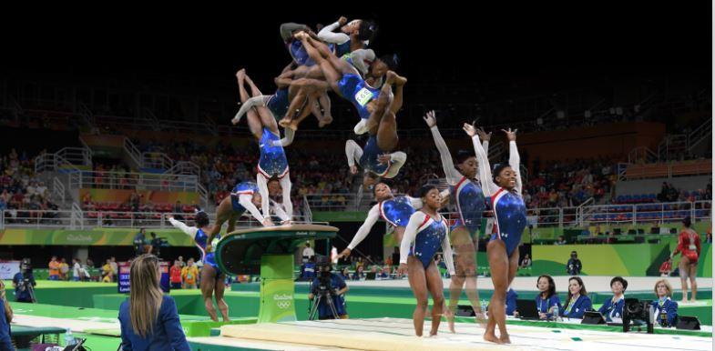 在本届奥运会上,西蒙完美地完成了许多高难度动作,在自由体操、跳马等环节中独占鳌头,也给她带来了女子团体和女子个人全能项目的两块金牌。图为以西蒙-拜尔斯命名的动作,“拜尔斯式”。