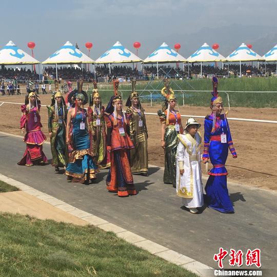图为内蒙古蒙古族服装展示代表队。 张玮 摄