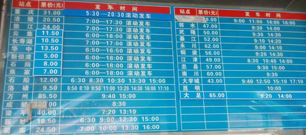 据了解,该班车发车时间为周五下午4点,返程时间为周日下午2点30分,每周一个往返班车。目前,渝运集团六分公司已开通长寿至武隆、大足、永川等地的旅游定时班线,每天两班(上午9点至9点半、下午2点至2点半)定时发车。