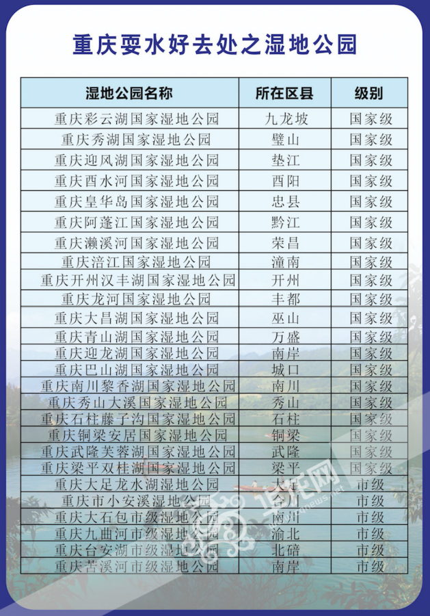 夏天除了游泳、漂流,还有不少段位高的耍水方式。继上周《重庆耍水地图》推出“漂流”篇后,今(10)日,由重庆市规划局、重庆市林业局组织,市地理信息中心联合市湿地保护管理中心推出了这幅《重庆耍水地图之湿地篇》,这周末的耍事又有了,对不?