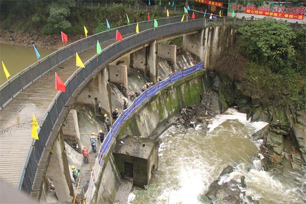 昨日上午,记者在堤坝看到,不少头戴安全帽、身系安全绳的工人已开始入场施工。区水务局工作人员介绍,本次加固将拆除坝上的人行桥和翻板闸闸墩,以便降低溢流堰顶高,并增设挡水闸门及控制机电设备及下游消能设施,工程完工后,该堤坝的防洪能力将得到极大提高。