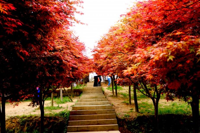 晒晒春日的暖阳可以除去冬日遗留下的慵懒,满园的红枫、杜鹃花、映山红已把满园染得一片通红,站在高处看就像是红色地毯铺盖了整片山一样。当小编看过红枫的曼妙,才明白,春风只将花为裙,却把红枫做霞披。