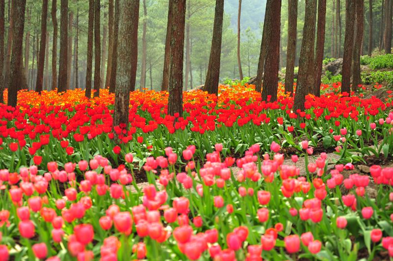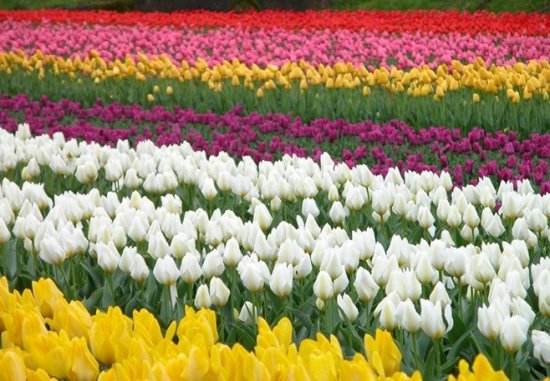 举目望去,大片大片的郁金香花把大木花谷妆点得五彩缤纷,绚烂多姿,一派生机盎然的景象。在阳光的照射下,各色郁金香花,芬芳吐蕊、娇艳妩媚,美得令人陶醉,令人流连忘返。