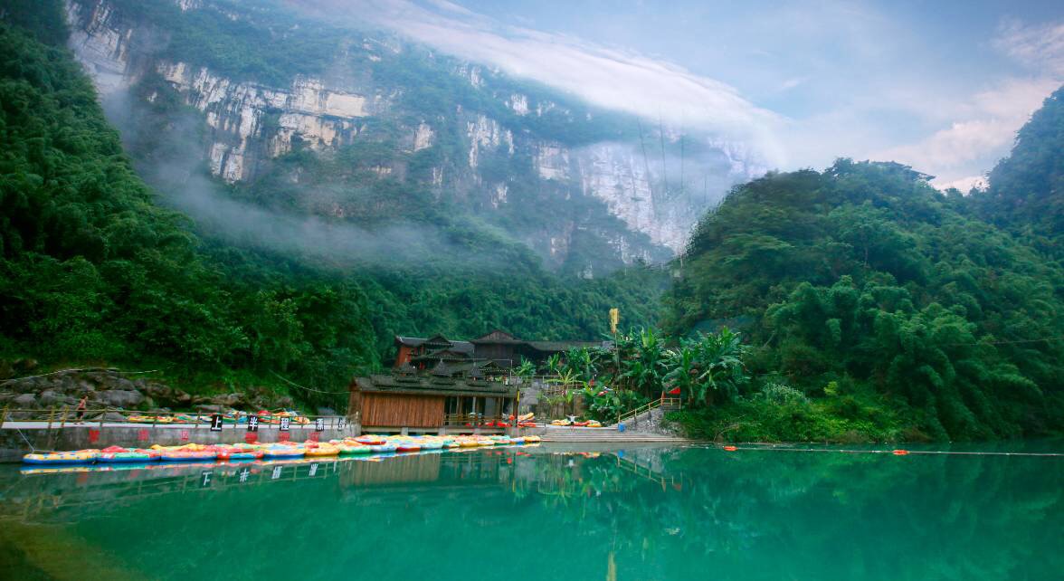 阿依河以峡高谷深、河床狭窄、河水清幽、景色绝美而闻名。沿流而下,长谷短峡,幽深神秘;雾绕群山,恍若蜃楼;鱼游浅滩,群猴嬉戏,移步换景,如诗如画。而苗家牛角寨,更是以其独特的土家、苗家民俗文化魅力吸引众多游客。