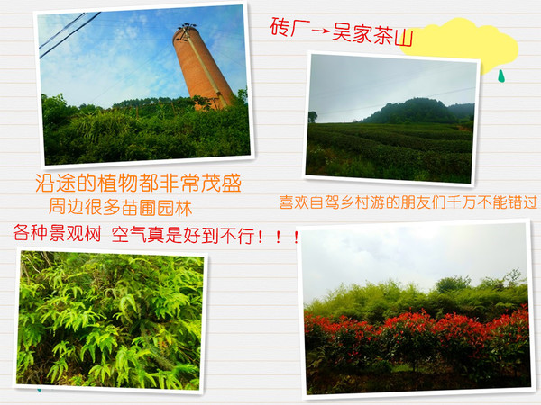 小编挖掘出了一条到圣灯山更有意思的乡村游路线,从南彭下道往跳南路方向,经过叉路口走李家咀方向(向左),然后会看到一个砖厂(见下图)后岔路口向右转往吴家茶山方向,沿途会看到很多茂盛的植物,周边都是苗圃园林,各种景观树,空气超级新鲜,被植被包围的感觉真爽,呼吸了新鲜的空气感觉自己都升华了。然后走主干道到达洞口,过桥左转就到达圣灯山景区了。