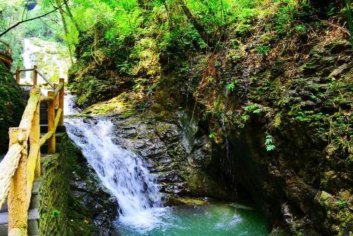 黑山谷景区原始生态风景由峻岭、峰林、幽峡、峭壁、森林、林海、飞瀑、碧水、溶洞、栈道、浮桥、云海、田园、原始植被、珍稀动植物等200多个景点景观组成。