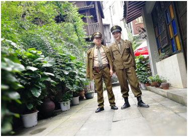 这时候也快到中午了,我们就在景区中就的餐,还别说这里的菜还真的好吃,份量也足,菜食上到一半就吃的不行啦!午我们是游玩的左手边的一个景点,这边有皇后舞厅、还有酒吧、民国政府、黄埔军校等很多特色景点,总的来说吃喝玩乐一套俱全。对我印象深刻是民国政府,在这里都摆出自己cosplay!