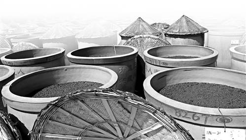 晒酱缸的晒场有30000余平方米,放置了上千只酱缸。有的酱缸用盖子盖着,有的酱缸上则“戴着”用棕叶编成的“斗笠”,排列整齐,煞是好看。这些酱缸有很长的历史,有几只甚至是清朝的“老玩意”,成为“镇场之宝”。