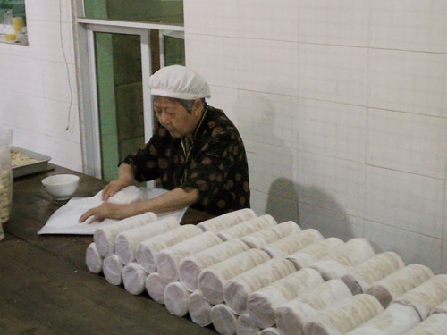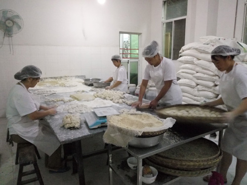 工人正在制作擀酥饼