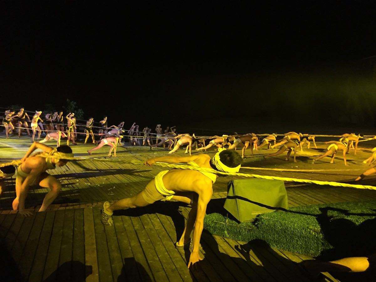 首先,传承与现代相结合。开场就引出了“川江号子”,并通过深情并茂的朗诵配音演绎,勾起了观众对川江的回忆,带着大家进入了历史长河。实景演出中穿插了,抬滑竿、火锅交响曲、纤夫精神、出嫁、孝道等,利用现在先进技术利用当地地形,结合光、电、声的传播体现出来山川之美,场景壮大,画面优美的舞台效果,使游客们感受到视觉上的极大冲击。