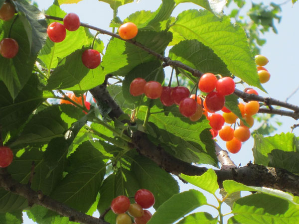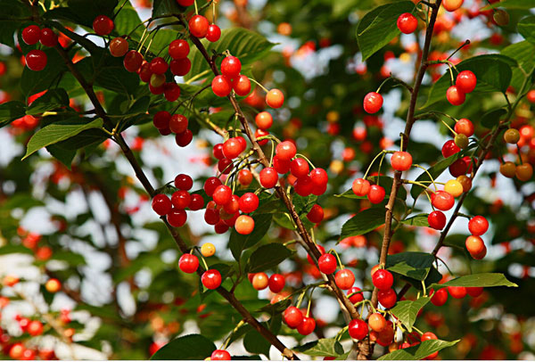双山镇樱桃种植面积较大,以当地白花樱桃为主,白花樱桃颗粒大,有果酸味。