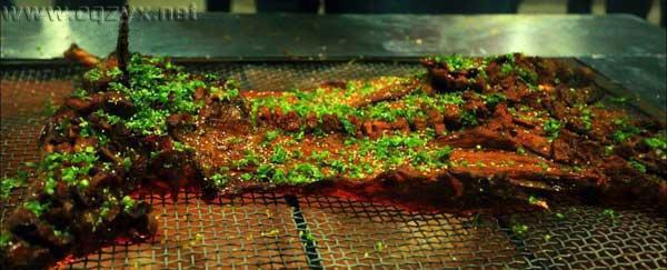 武隆的烤全羊,麻、辣、干、香,店家还会留一部分羊肉来,码上佐料,做成羊肉串,让客人自己围着炭火过一把烧烤瘾。最后再喝一碗武隆高山萝卜炖的羊杂汤,舌尖的最高享受莫过于此。